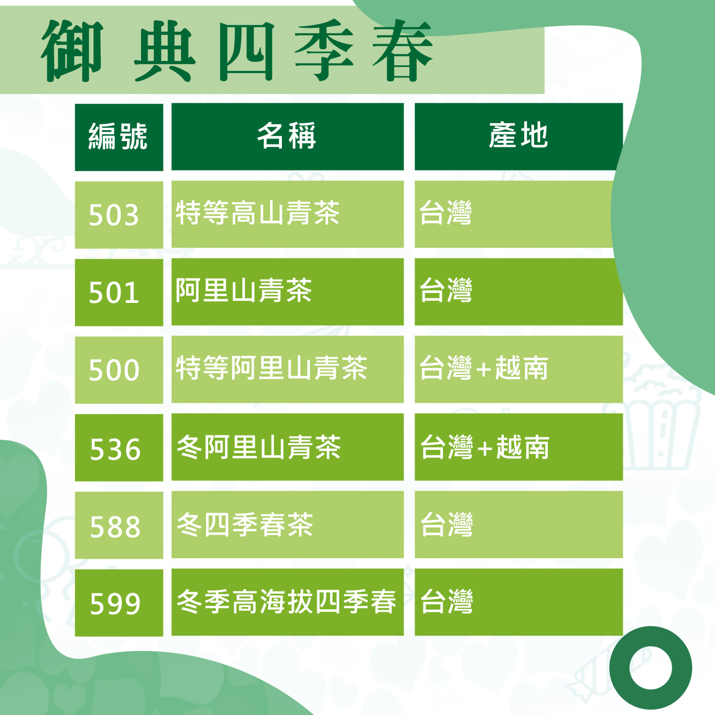 茶湯清爽的阿里山青茶、飄香度高,價位上平宜近人,是市面上的熱賣茶款之一。▶ 暸解詳情_501
