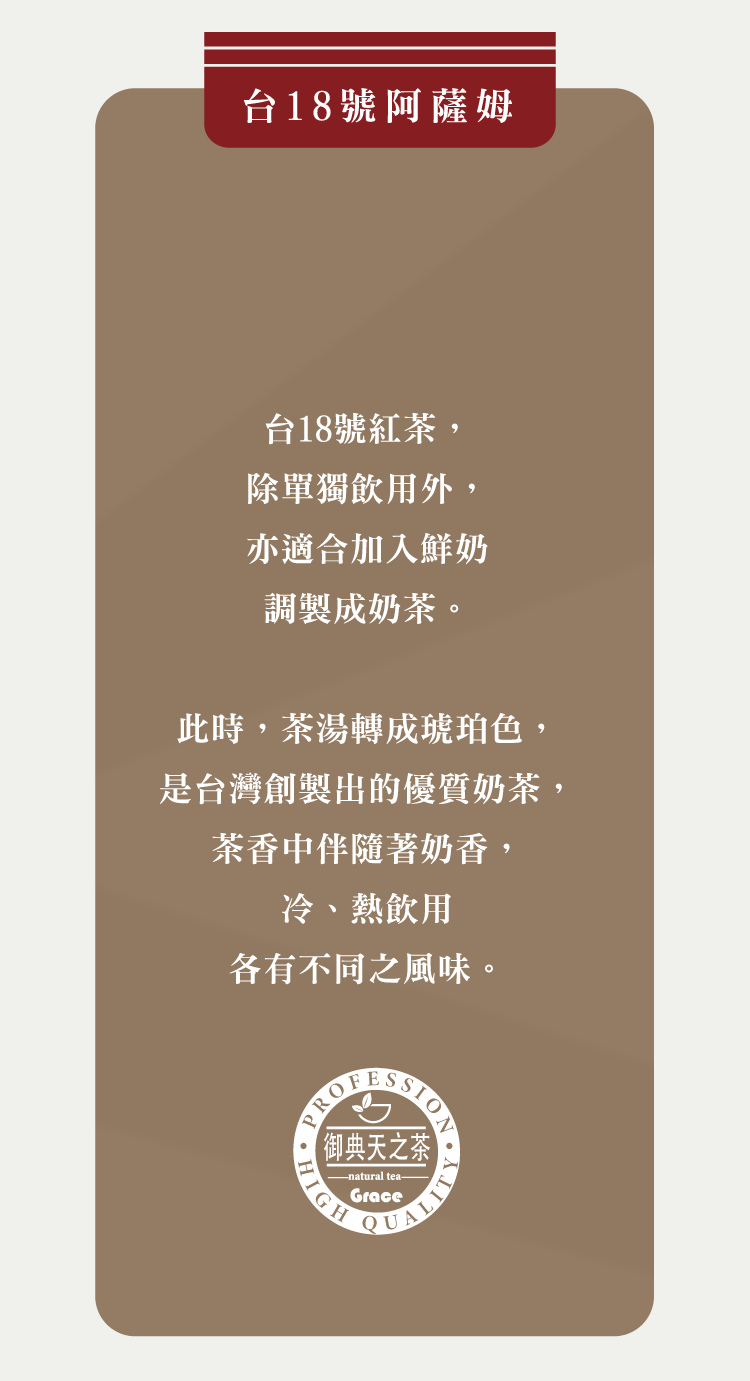 特色:茶湯鮮紅、色澤澄清淡果香,口感平順 -