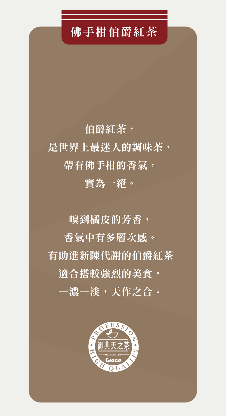 特色:佛手柑薰製、混合茶、濃郁,蠻適合做奶茶 -